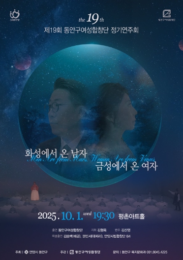 이번 정기연주회는 ‘화성에서 온 남자 금성에서 온 여자’라는 주제로, 이별의 슬픔과 그리움을 노래한다. 총 5개의 스테이지로 구성된 이번 공연은 동안구여성합창단의 애절한 노래와 특별한 무대 연출로 인간 내면의 정서를 한층 더 깊이 있게 표현한다.
