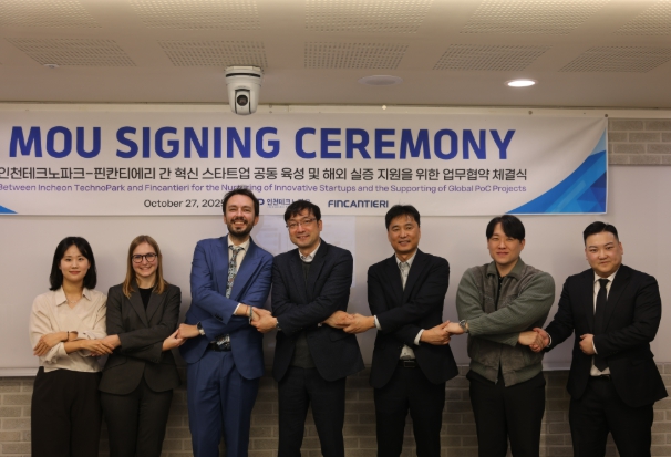 이번 업무협약은 인천TP와 인천경제자유구역청이 운영하는 인천스타트업파크의 ‘TRYOUT’ 글로벌 실증 사업의 일환으로 추진됐으며, 정승수 인천TP 디지털벤처창업사업단장과 핀칸티에리사 관계자 등이 참석했다.
