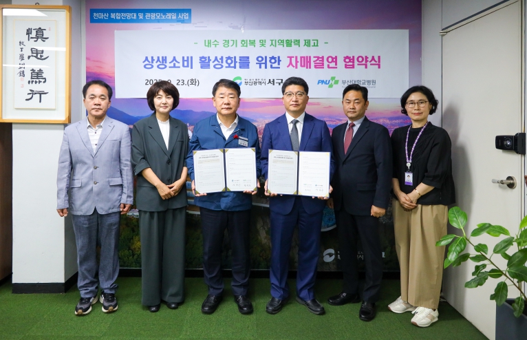 [메이저뉴스]부산광역시 서구는 9월 23일, 부산대학교병원(병원장 정성운)과 ‘상생소비 활성화를 위한 자매결연 업무협약’을 맺고 지역 상생 협력에 나섰다.