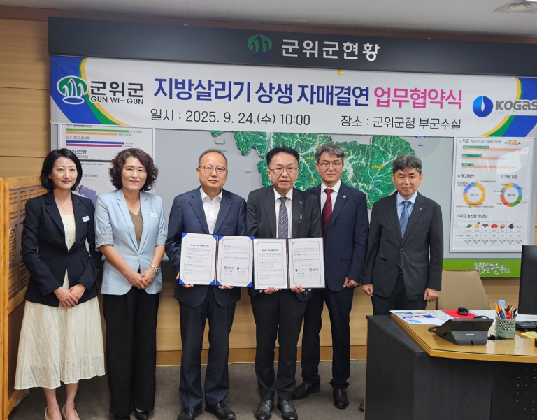 [메이저뉴스]군위군과 한국가스공사(사장 최연혜)는 9월 24일 수요일 오전 10시 군위군청 부군수실에서 지방살리기 상생 자매결연 업무협약을 체결했다. 지방살리기 상생 자매결연 업무협약은 비수도권 인구감소지역의 경제 활성화와 인구 유입을 위해 중앙정부와 공공기관, 지자체가 협력하는 공식 협약이다.
