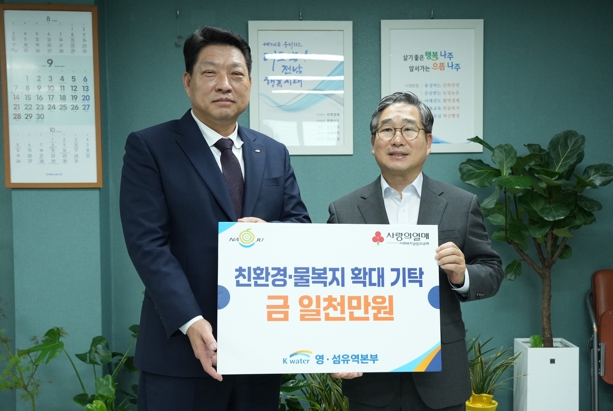 [메이저뉴스] 전라남도 나주시는 한국수자원공사 영·섬유역본부와 나주수도지사가 지역의 환경 보호와 물 복지 증진을 위해 24일 지원금 1천만 원을 기탁했다고 밝혔다.