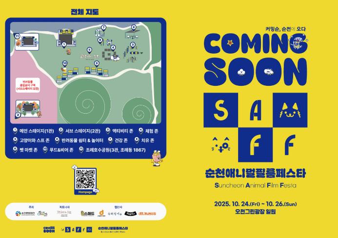 [메이저뉴스]순천시와 순천문화재단에서 오는 24일부터 26일까지 3일간, 반려동물과 함께 즐길 수 있는 특별한 야외 영화축제 ‘2025 순천애니멀필름페스타(SAFF)’를 공동으로 개최한다.