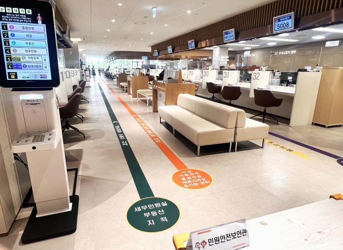 통합민원실은 지하철과 버스정류장에서 도보 2분 거리에 위치해 이용 접근성이 뛰어나며, 민원실 전용 에스컬레이터를 통해 교통약자도 안전하고 편리하게 이동할 수 있는 환경을 갖췄다.