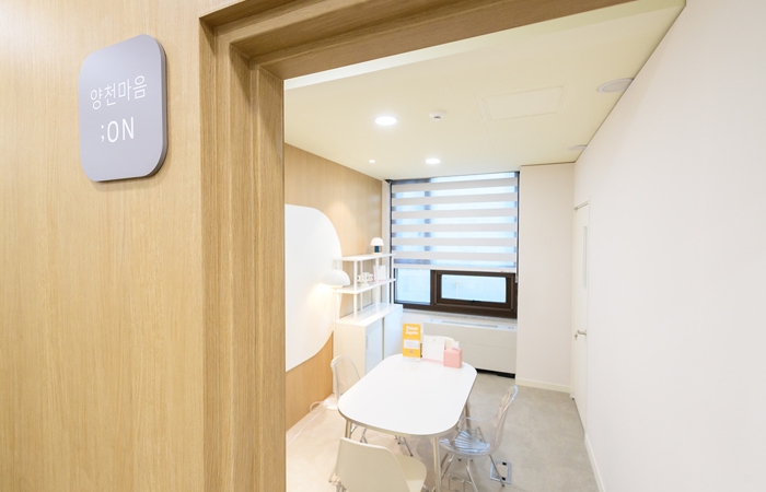 심리상담소 ‘마음:온’은 양천구 보건소(본관) 2층 정신건강복지센터 내 일부 공간을 리모델링해 조성한 것으로, 전문 상담 기능은 유지하면서도 편안한 분위기의 전용 상담 공간을 갖춘 것이 특징이다.