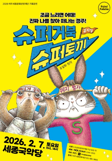 [메이저뉴스]여주세종문화관광재단이 오는 2월 7일, 겨울방학 특집으로 온 가족이 함께 즐길 수 있는 가족뮤지컬 ‘슈퍼거북 슈퍼토끼’를 선보인다.
