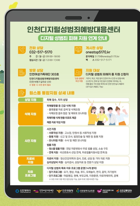 | ▲ 인천디지털성범죄예방대응센터 피해 지원 안내문 |
