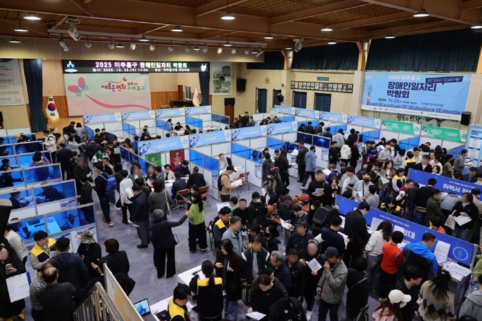 [메이저뉴스]인천 미추홀구는 22일 구청 대회의실에서 장애인의 안정적 취업 지원과 사회참여 확대를 위한 ‘2025 장애인 일자리 박람회’를 성황리에 개최했다.