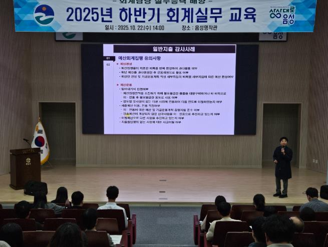 [메이저뉴스]음성군은 22일 음성명작관에서 회계 담당 군 공직자 130여 명을 대상으로 ‘2025년 하반기 회계실무 교육’을 실시했다.