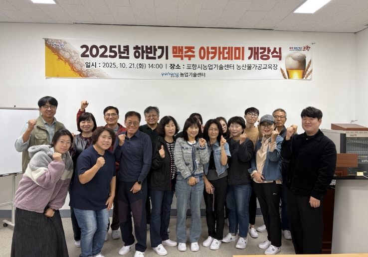 [메이저뉴스]포항시는 지난 21일 흥해읍 농업기술센터 농산물가공교육장에서 지역산 보리를 활용한 ‘2025년 하반기 수제맥주 아카데미’ 개강식을 개최했다.