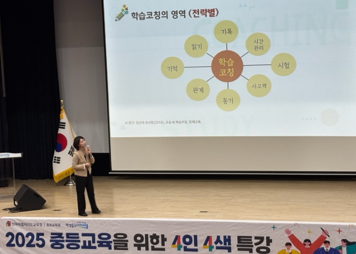 [메이저뉴스]전북특별자치도교육청은 23일 창조나래 3층 시청각실에서 중등 교장(감), 교사, 교육전문직원 200여 명을 대상으로 ‘2025 중등 학력신장 4인 4색’ 세 번째 특강을 개최했다.