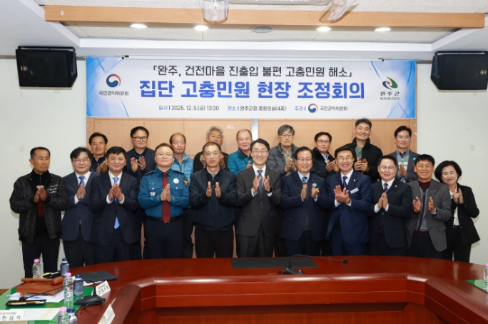 회의에는 민원인 대표를 비롯해 국민권익위 한삼석 부위원장, 유희태 완주군수, 완주경찰서장, 완주군의회 의장, 전주국토관리사무소 관계자 등이 참석해 현실적인 개선 방안을 논의했다.