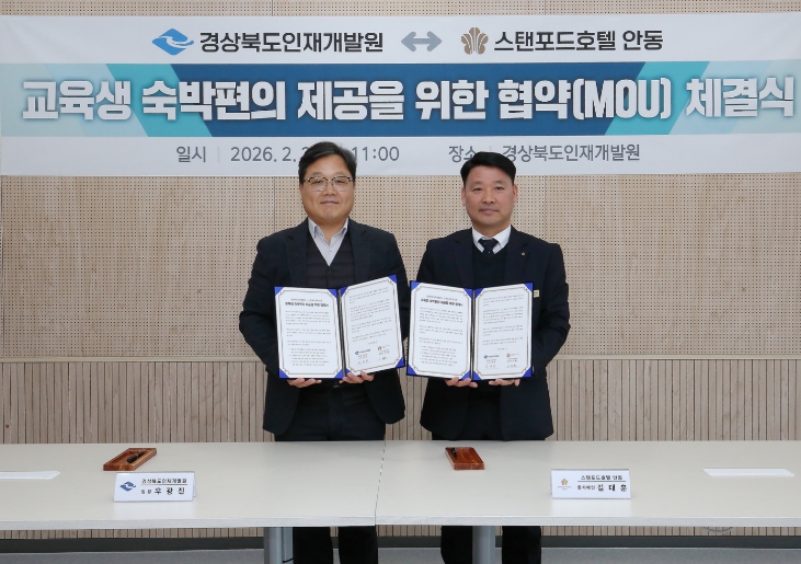 지난해 8월 인재개발원이 도청 신도시로 이전함에 따라 교육생 수요가 몰리며 숙소 예약의 번거로움과 비용 문제가 계속 제기돼 왔다는 점에서, 이번 협약은 더욱 큰 의미를 갖는다.
