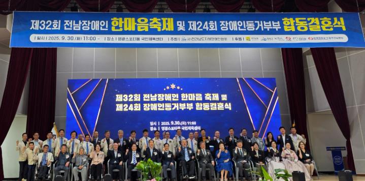[메이저뉴스]전라남도는 지난 9월 30일 영광스포티움국민체육센터에서 제32회 전남장애인한마음축제와 제24회 장애인동거부부 합동결혼식을 성황리에 개최했다고 밝혔다.