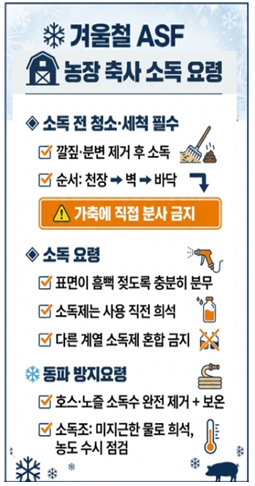 특히 외국인 근로자에 대한 현장 관리도 대폭 강화한다. 불법 축산물 반입을 엄격히 금지하고 위반 시 무관용 원칙을 적용하는 한편, 2월 말까지 외국인 근로자 숙소와 농장 주변에서 환경 시료를 채취·검사해 방역 사각지대를 없앨 계획이다.