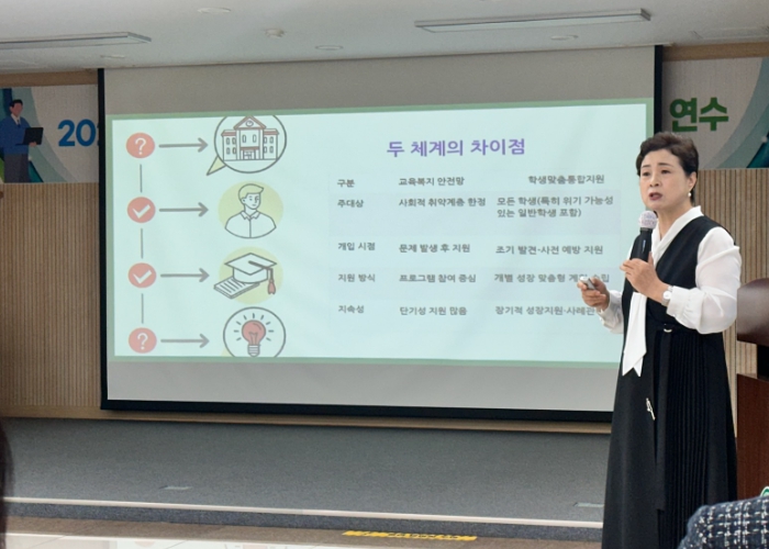 [메이저뉴스]경상북도 김천교육지원청은 10월 1일 수요일, 김천교육지원청 3층 대회의실에서 전직원을 대상으로 2025년 학생맞춤통합지원체계 구축을 위한 찾아가는 연수를 개최했다.