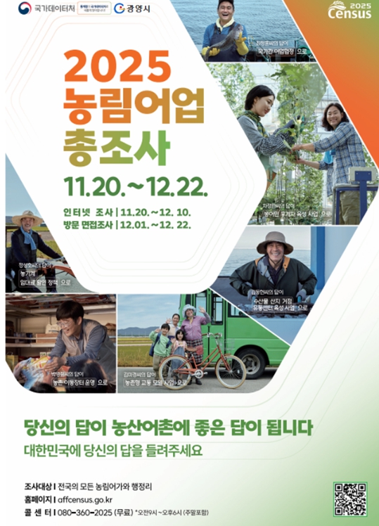[메이저뉴스]광양시는 11월 20일부터 12월 22일까지 ‘2025 농림어업총조사’를 실시한다고 밝혔다.