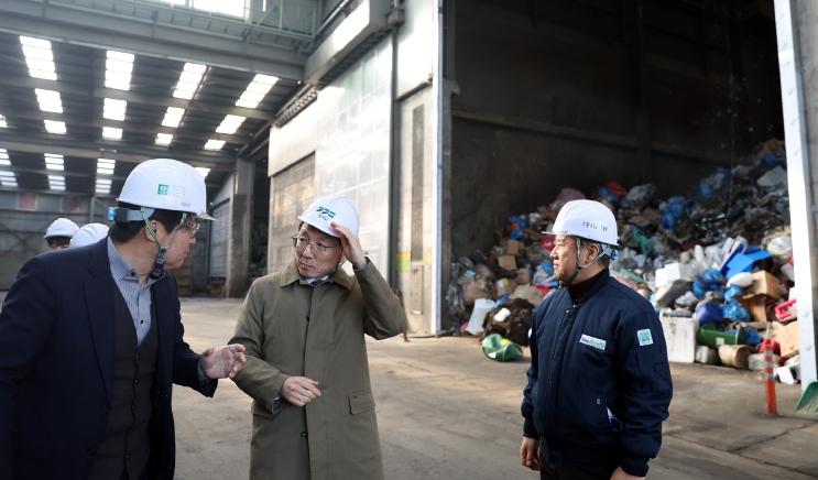 [메이저뉴스]올해부터 수도권 생활폐기물에 대한 ‘직매립’이 금지된 가운데 김성중 경기도 행정1부지사가 13일 평택시의 한 민간처리시설(소각, 재활용)을 찾아 폐기물 처리 현황을 점검했다.