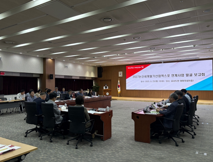 [메이저뉴스]논산세계딸기산업엑스포 조직위원회는 23일 충남도청 대회의실에서 ‘2027 논산세계딸기산업엑스포 연계사업 발굴 보고회’를 개최했다.