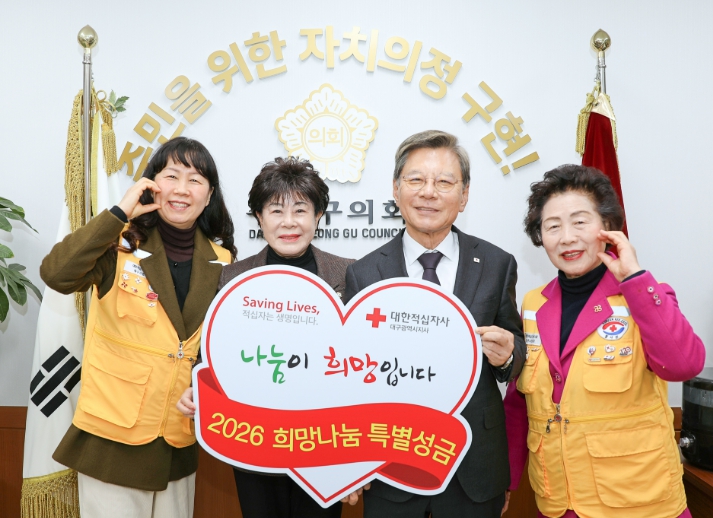 [메이저뉴스]대구 수성구의회는 13일 대한적십자사 대구지사에 ‘2026 희망나눔 특별성금’ 100만원을 전달했다.