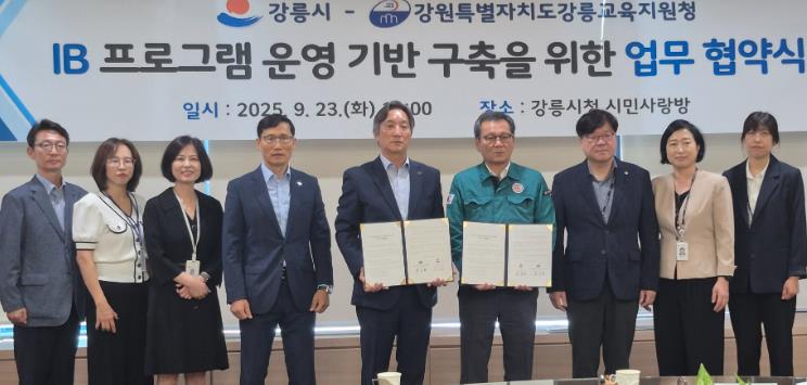 [메이저뉴스]강릉교육지원청은 23일 오전 10시, 강릉시청에서 강릉시와 국제 바칼로레아(IB) 교육 프로그램 도입 및 운영을 위한 업무 협약을 체결했다.