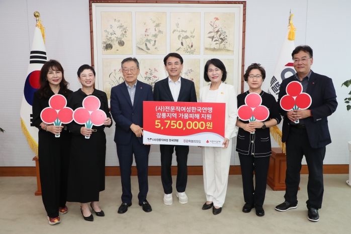 [메이저뉴스] 강원특별자치도는 9월 23일, (사)전문직여성 한국연맹 최예담회장이 도청을 방문해 강릉 가뭄피해 지원을 위한 기부금(5,750,000원)을 전달했다고 밝혔다.