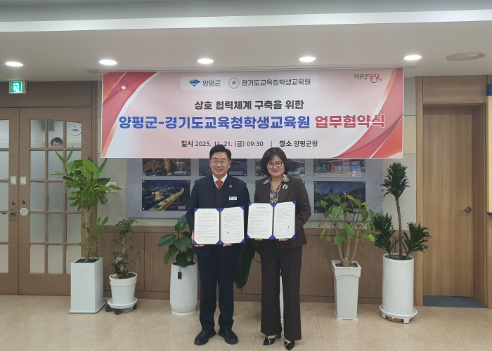 지미숙 경기도교육청학생교육원장은 “이번 협약은 학생교육원이 지역과 함께 성장하는 미래형 교육기관으로 도약하는 계기가 될 것”이라며 “양평군과 협력해 미래세대가 리더십과 인성을 함께 키울 수 있는 교육환경을 조성하겠다”고 말했다.