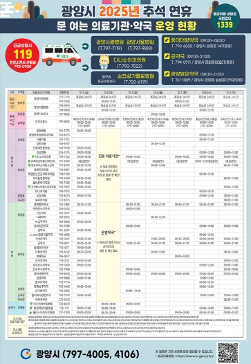 | ▲ 광양시, 추석 연휴 종합상황실 운영으로 생활불편 최소화 - 총무과(추석 연휴 문 여는 약국, 의료기관 운영 현황) |