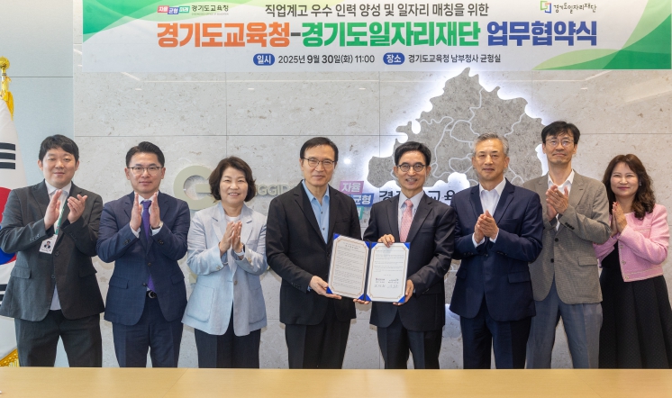 [메이저뉴스]경기도교육청이 30일 남부청사에서 경기도일자리재단과 도내 직업계고 학생의 성공적 사회 진출 및 일자리 창출을 위한 업무 협약을 체결했다.