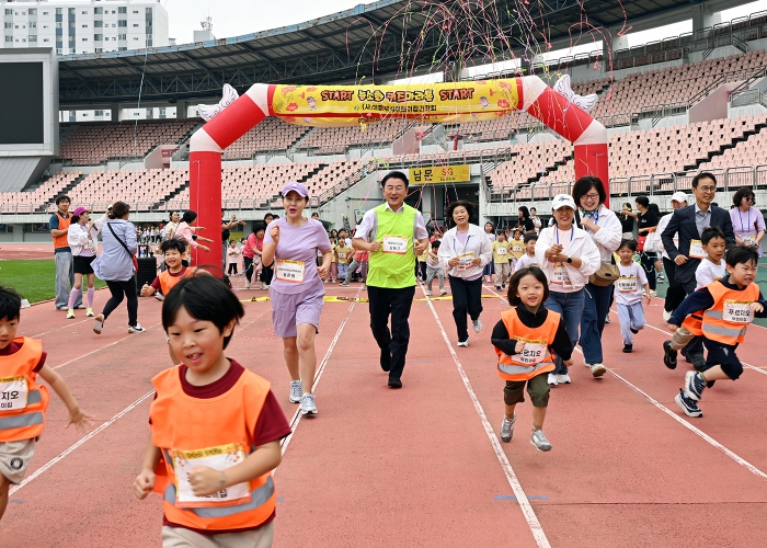 | ▲ 김동근 시장이 9월 30일 ‘2025년 제9회 의정부시어린이집연합회 영유아 체험전’에서 진행되는 키즈 마라톤에 참여하고 있다. |