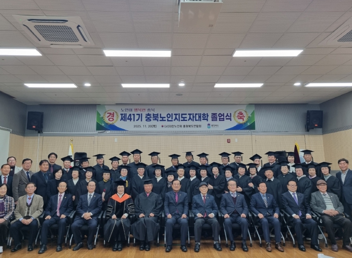 [메이저뉴스]대한노인회 충청북도연합회(회장 이명식) 부설 충북노인지도자대학 제41기 졸업식이 20일 도연합회 소강당에서 열렸다.