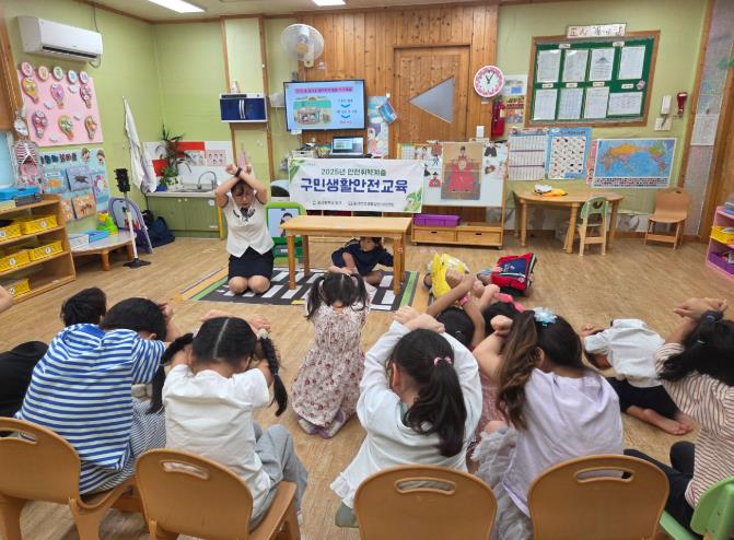 이날 교육은 ▲화재 발생 시 대피요령 ▲지진과 태풍 등 자연재난 시 행동요령 ▲보행자 교통안전 등 3가지 주제를 중심으로 어린이 눈높이에 맞춰 체험 형식으로 진행됐다.