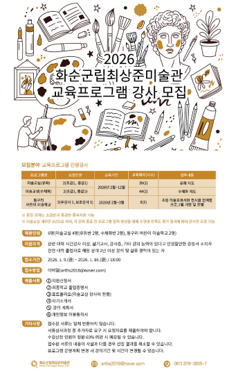 | ▲ 화순군립최상준미술관 2026년 교육프로그램 강사모집 포스터 |
