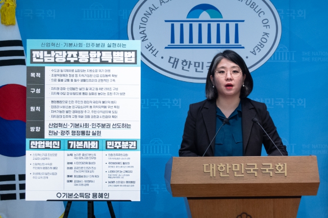 한편, 용혜인 의원이 대표발의한 전남광주통합특별법에는 더불어민주당 김원이·소병훈 의원, 조국혁신당 서왕진·이해민·정춘생·황운하 의원, 진보당 윤종오 의원, 사회민주당 한창민 의원, 무소속 김종민 의원 등 9명이 공동발의로 함께 참여했다.