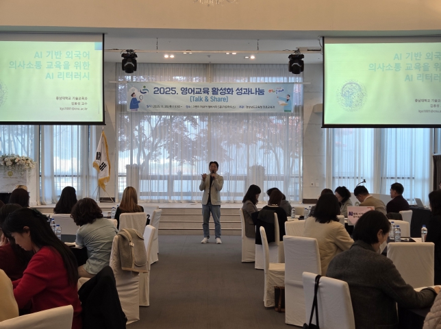 특히 최근 주목받고 있는 생성형 AI 기반 영어교육 방안을 모색하여 영어교육의 새로운 방향을 제시하는 데 중점을 두었다. 충남대학교 김용성 교수의 '생성형AI를 활용한 외국어교육의 바람직한 방향'을 주제로 한 특강을 통해 AI 기반 영어 말하기 자료 활용, 교실수업 혁신 사례 등이 소개돼 참가자들의 큰 호응을 얻었다.