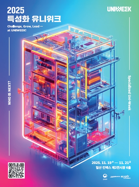 [메이저뉴스]교육부와 한국산업기술진흥원(원장 민병주)은 11월 19일부터 11월 21일까지 일산 킨텍스에서 첨단산업 특성화대학 학생들을 위한 축제인 ‘유니위크(Uni-Week)’를 개최한다. 이에 앞서 11월 18일부터 특성화대학 반도체·이차전지 분야 경진대회 결선도 시작된다.