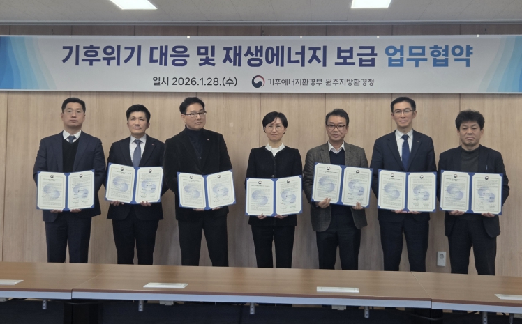 [메이저뉴스] 충북도는 28일 원주지방환경청, 강원특별자치도 및 에너지 공기관과 함께 기후위기 대응 역량을 강화하고 재생에너지의 안정적인 보급 확대를 위한 업무협약을 체결했다.