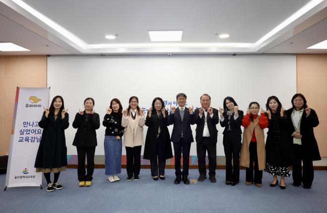 2026학년도 ‘도담도담’ 사업, 진로 직업 중심 대안교육 확대 방향, 소규모 초등학교 맞춤형 교육 지원 체계 등이 주제로 다뤄졌고, 천창수 교육감은 울산교육이 나아갈 발전 방향과 정책의 필요성을 설명하며 의견을 폭넓게 나눴다.