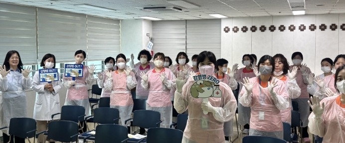 | ▲ 주성삼병원 종사자들이 감병예방 교육을 하고 있다. |