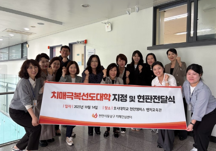 [메이저뉴스]천안시는 14일 치매극복선도대학으로 신규 지정된 호서대학교 글로벌융합대학에 현판을 전달했다고 밝혔다.
