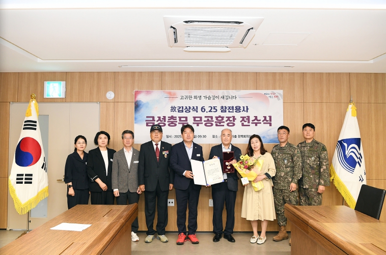 [메이저뉴스]부산 동래구는 지난 13일 6․25전쟁에 참전해 무공을 세운 고(故) 김상식님의 자녀 김형원씨에게 금성충무 무공훈장과 훈장증을 전수했다.