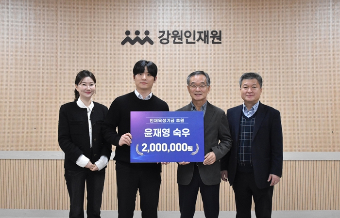 [메이저뉴스]최근 강원학사를 졸업한 윤재영 숙우(25세)가 후배 인재 육성을 위한 기부금 200만 원을 강원인재원에 기탁했다.