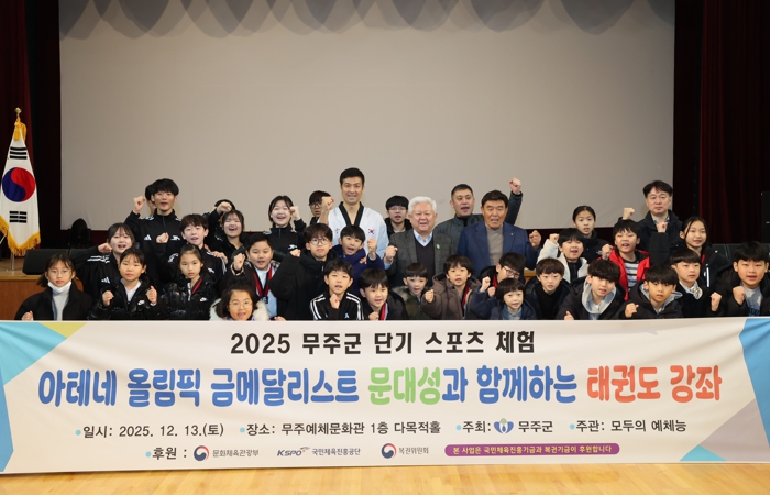 [메이저뉴스]무주군은 지난 13일 “올림픽 금메달리스트 문대성과 함께하는 태권도 교실”을 진행했다고 밝혔다.