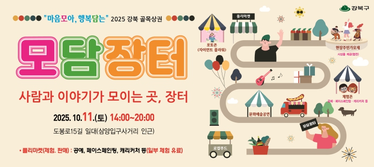 [메이저뉴스]서울 강북구는 오는 11일 오후 2시부터 8시까지 삼양입구사거리 인근 도봉로15길 일대에서 ‘2025 강북 골목상권 모담장터’를 개최한다고 밝혔다.