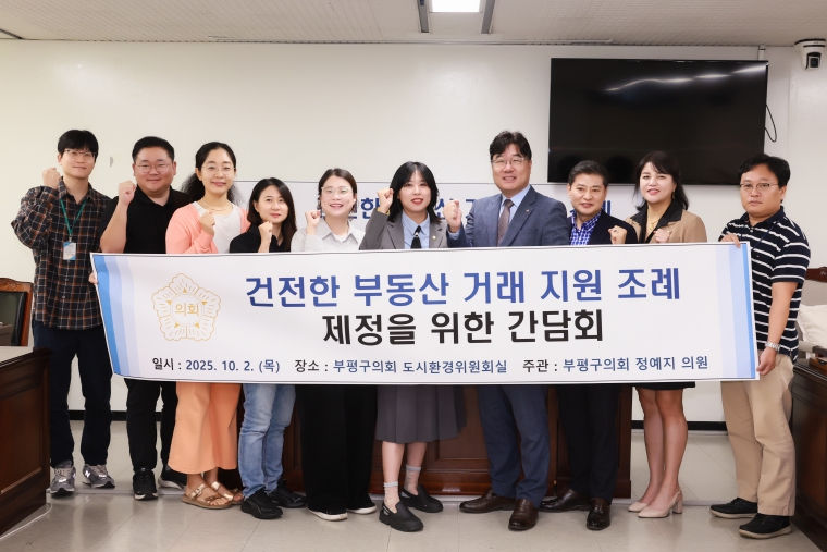 [메이저뉴스]인천 부평구의회 정예지 의원(더불어민주당 비례)은 지난 10월 2일 부평구의회 도시환경위원회실에서 '인천광역시부평구 건전한 부동산 거래 지원 조례'제정을 위한 간담회를 개최했다.