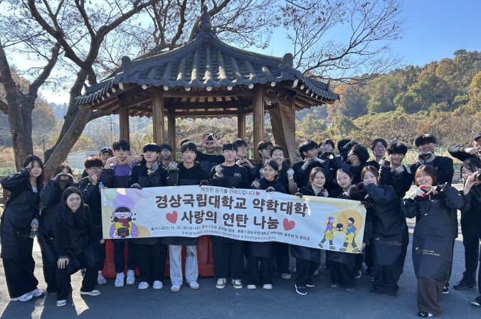 약학대학 학생과 교직원 30명은 ‘따뜻한 한반도 사랑의연탄나눔운동본부(진주지부)’와 협력하여 진주시 주약마을 일대에 거주하는 에너지 취약계층 5가구에 연탄 1900장을 직접 전달했다. 특히, 산 중턱에 위치해 차량 진입이 어려운 가구들을 위해 봉사자들은 손수 연탄을 옮겨 나르고 창고마다 정성껏 쌓으며 희망의 온기를 전했다.