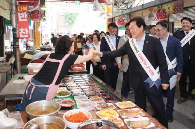 이후 박 지사는 김해 동상시장을 찾아 온누리상품권으로 과일, 떡, 건어물 등을 구입하며 상인들을 격려했다. 동상시장은 180개 점포, 220여 명의 소상공인이 종사하는 지역 대표 전통시장으로, 올해는 방수공사 및 아케이드 도색 등 시설 현대화사업을 통해 환경 개선도 추진 중이다.