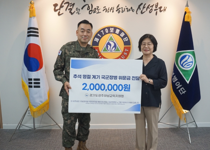 오성애 교육장은 “어려운 여건에서도 묵묵히 헌신하는 국군 장병 여러분과 복지시설 관계자분들께 광주하남 교육가족을 대표해 깊이 감사드린다”며 “작은 정성이지만 따뜻한 마음이 전해져 우리 사회 모든 구성원들이 풍성하고 넉넉한 한가위를 보내시길 바란다”고 말했다.