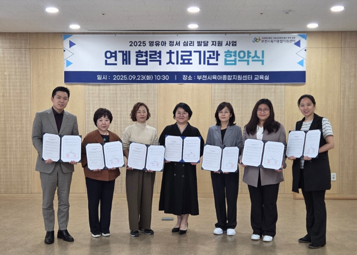 부천시육아종합지원센터는 도움이 필요한 영유아 대상 맞춤지원을 위해 부천시에 위치한 전문치료기관과 업무협약을 체결해 지역사회 협력 기반을 마련했다. 협력기관으로는 ▲너랑나랑사회성발달센터 ▲해냄마인드케어센터 ▲새꿈마음심리상담센터 ▲마음심리언어연구소 ▲부천아동발달센터 ▲시온감각통합발달상담연구소 ▲초록소리 등 총 7개 기관이 참여했다.