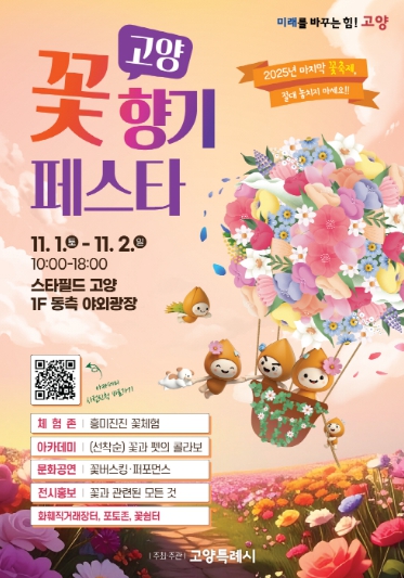 [메이저뉴스]고양특례시는 오는 11월 1일과 11월 2일, 오전 10시부터 오후 6시까지, 스타필드 고양 1층 동측 야외광장에서 2025년 마지막 꽃축제인 ‘고양 꽃향기 페스타’를 개최한다고 밝혔다.