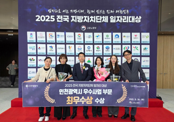 [메이저뉴스]인천광역시는 지난 9월 8일 열린 ‘2025년 전국 지방자치단체 일자리대상 시상식’에서 우수사업 부문 최우수상을 수상했다고 밝혔다.